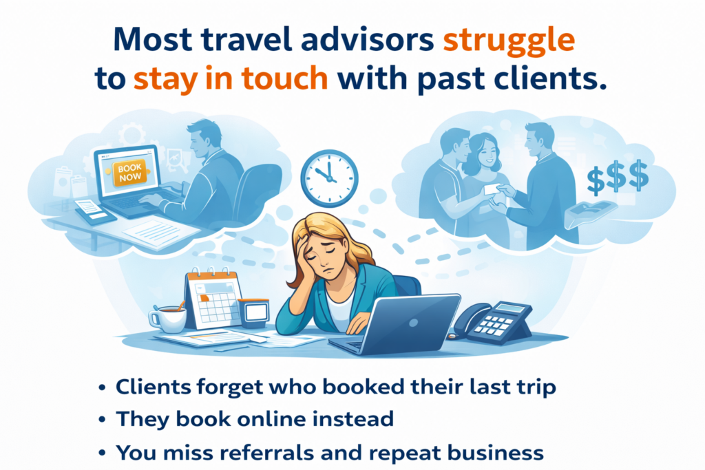 Most travel advisors struggle to stay in touch with past clients.